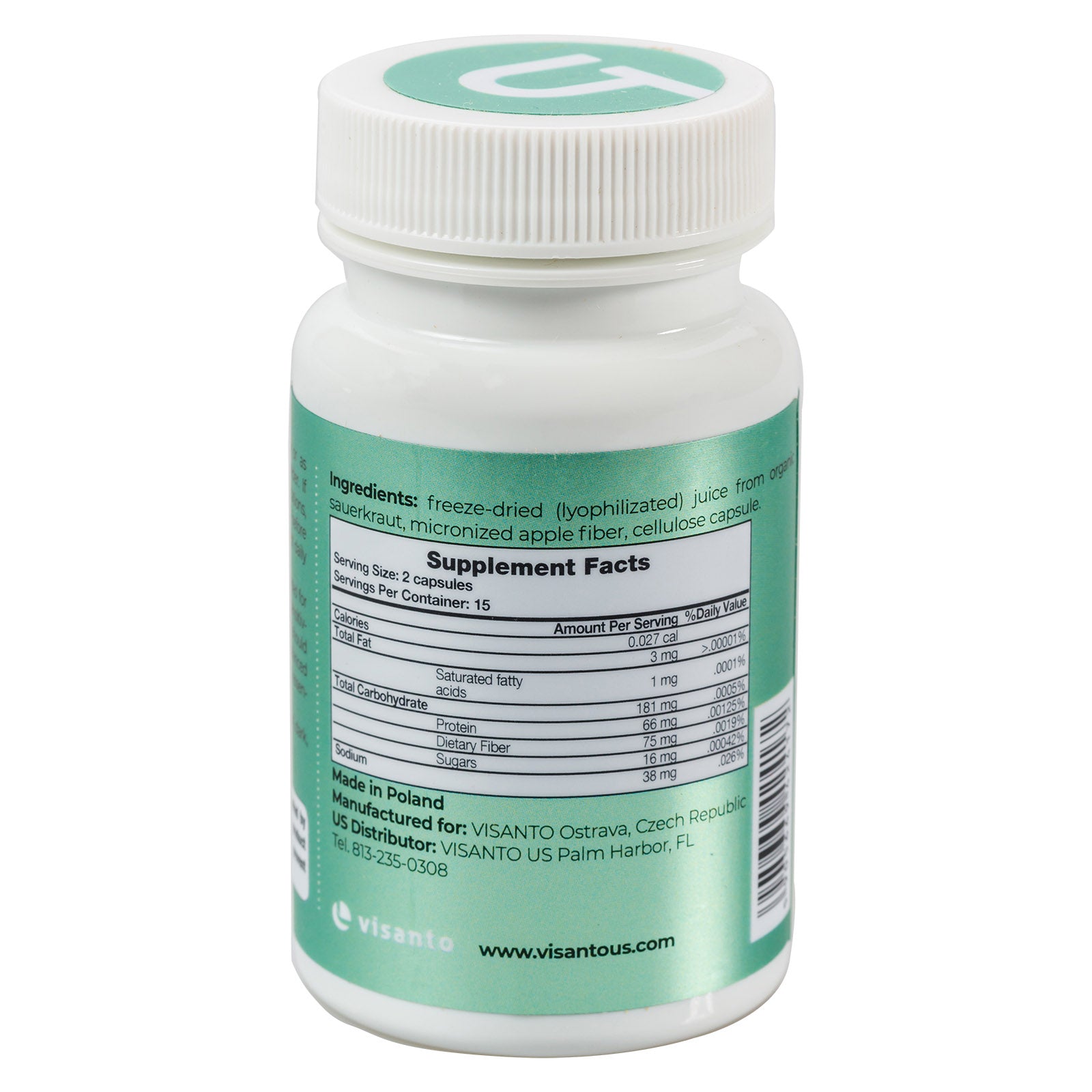 INGREDIENTS: freeze-dried (lyophilization) juice from organic sauerkraut, micronized apple fiber, cellulose capsule.