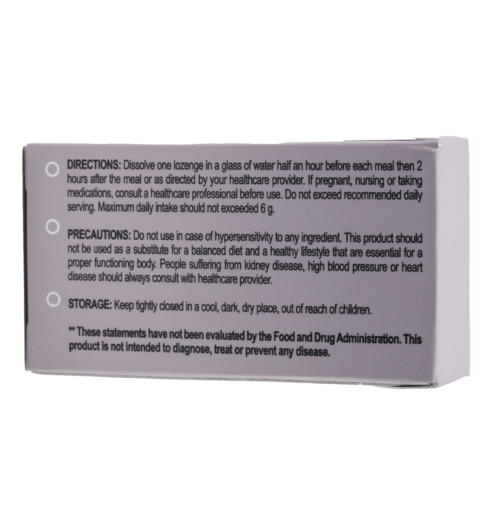DIRECTIONS: Dissolve one lozenge in a glass of water half an hour before each meal then 2 hours after a meal or as directed by your healthcare provider. If pregnant, nursing or taking medications, consult a healthcare professional before use. Do not exceed recommended daily serving. Maximum daily intake should not exceeded 6 g.