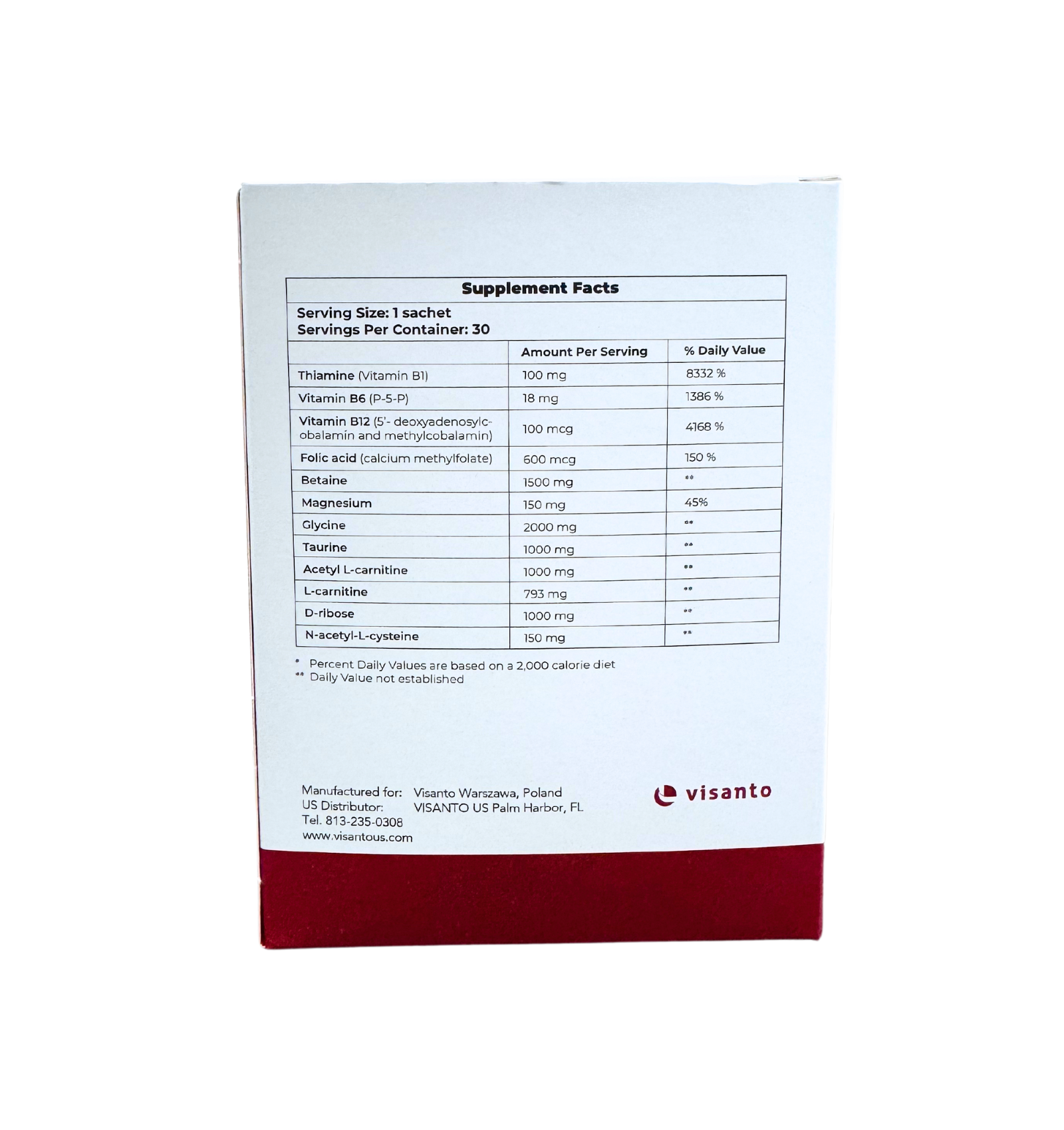 INGREDIENTS: L-lysine, glycine, betaine hydrochloride, taurine, D-ribose, acetyl L-carnitine, N-acetyl-L-cysteine, thiamine mononitrate, pyridoxal 5-phosphate, calcium L-methylfolate, methylcobalamin.