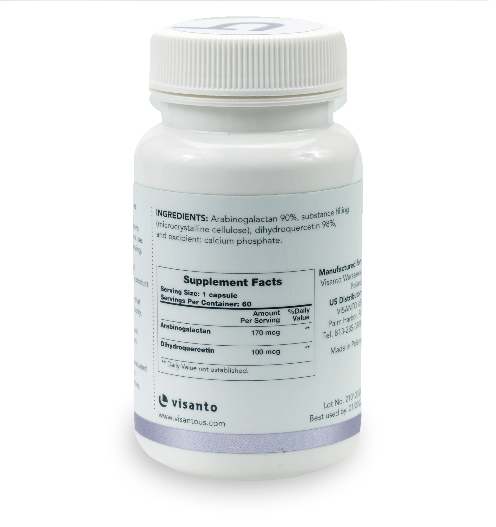 INGREDIENTS: Arabinogalactan 90%, substance filling (microcrystalline cellulose), dihydroquercetin 98%, and excipient: calcium phosphate. (Larch arabinogalactan).